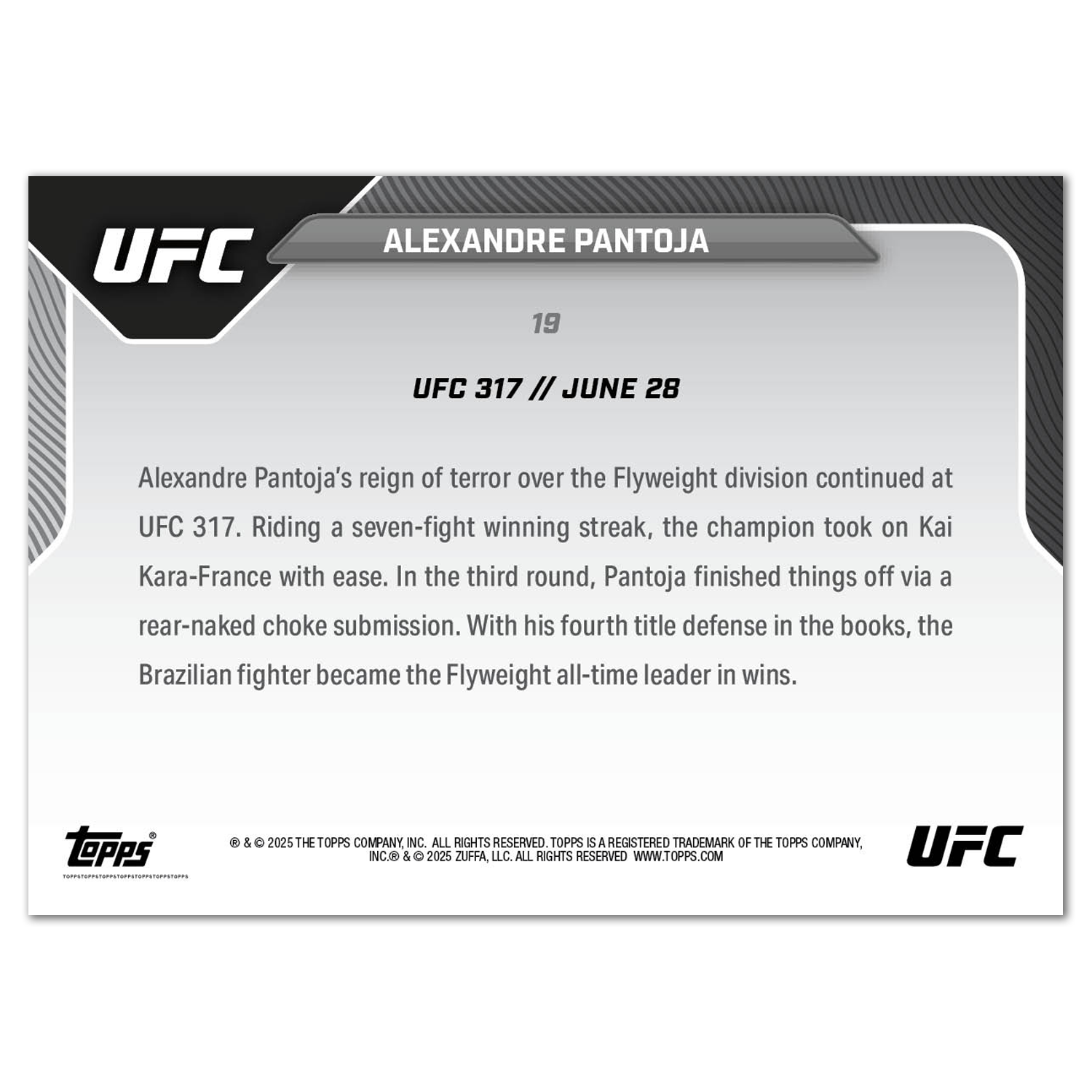 Alexandre Pantoja - 2025 UFC Topps NOW® - Card 19