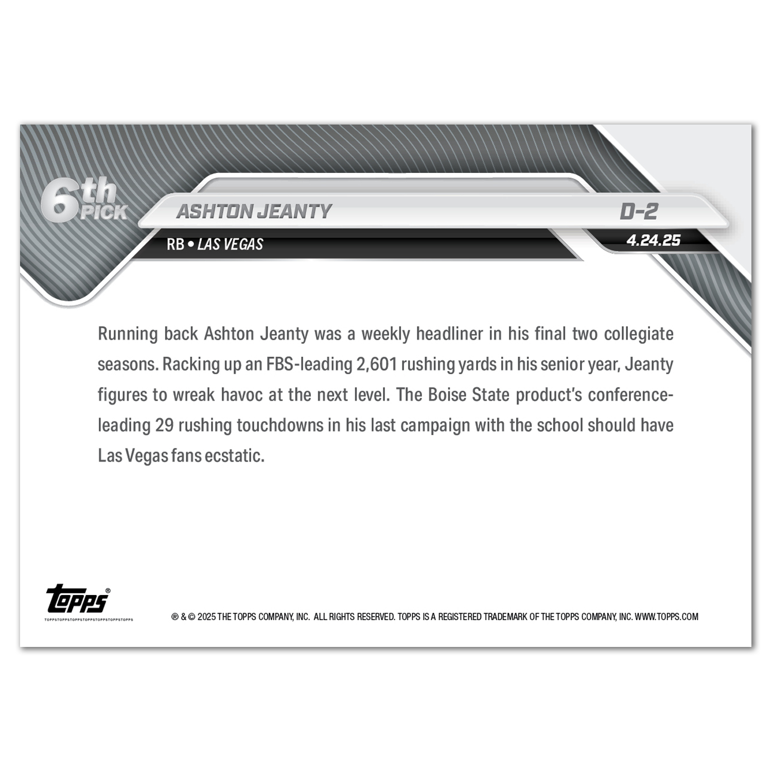 Ashton Jeanty - 2025 Topps NOW® Football - Card D-2 - LOOK FOR AUTOS
