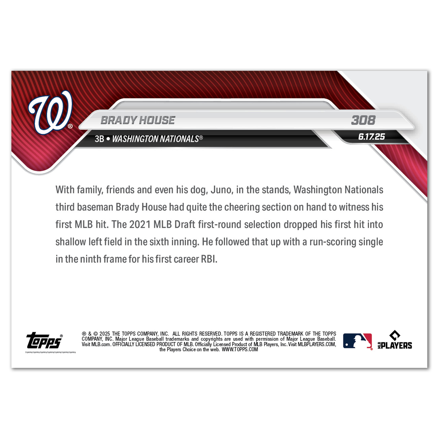Brady House - 2025 MLB Topps NOW® - Card 308