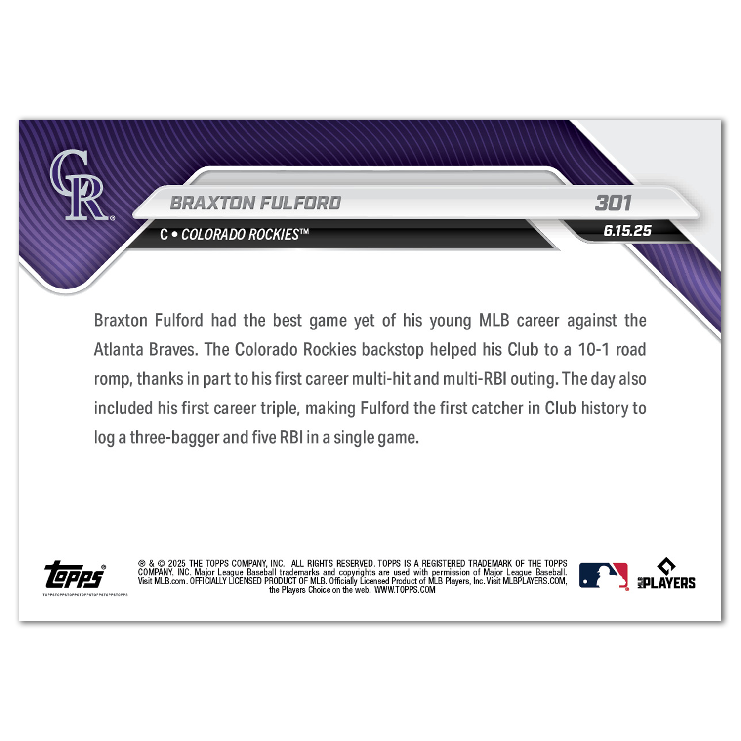 Braxton Fulford - 2025 MLB Topps NOW® - Card 301