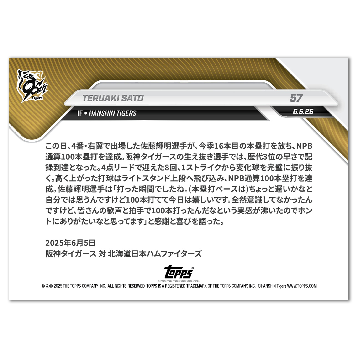 TERUAKI SATO - 2025 NPB Topps NOW® - Card 57
