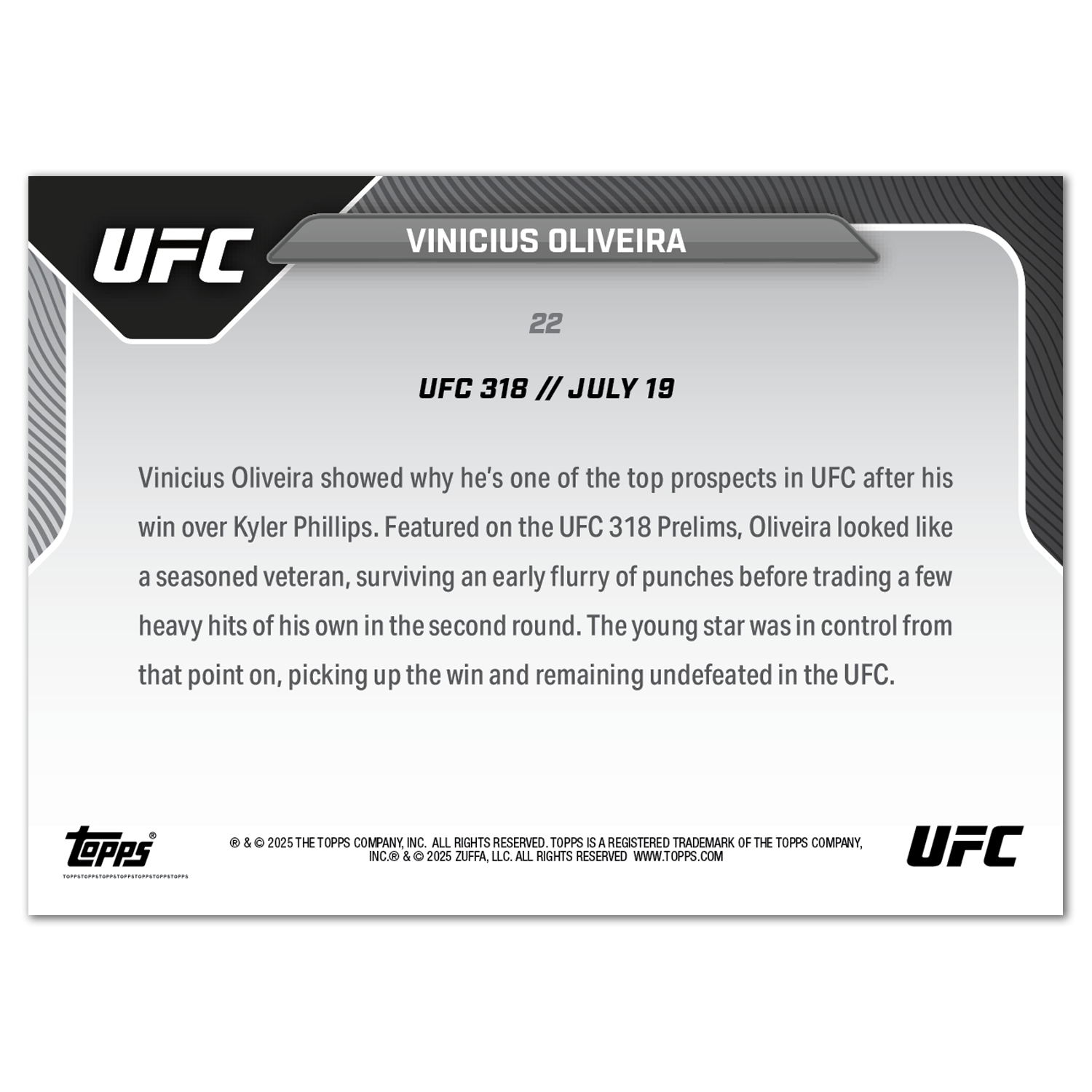 Vinicius Oliveira - 2025 UFC Topps NOW® - Card 22