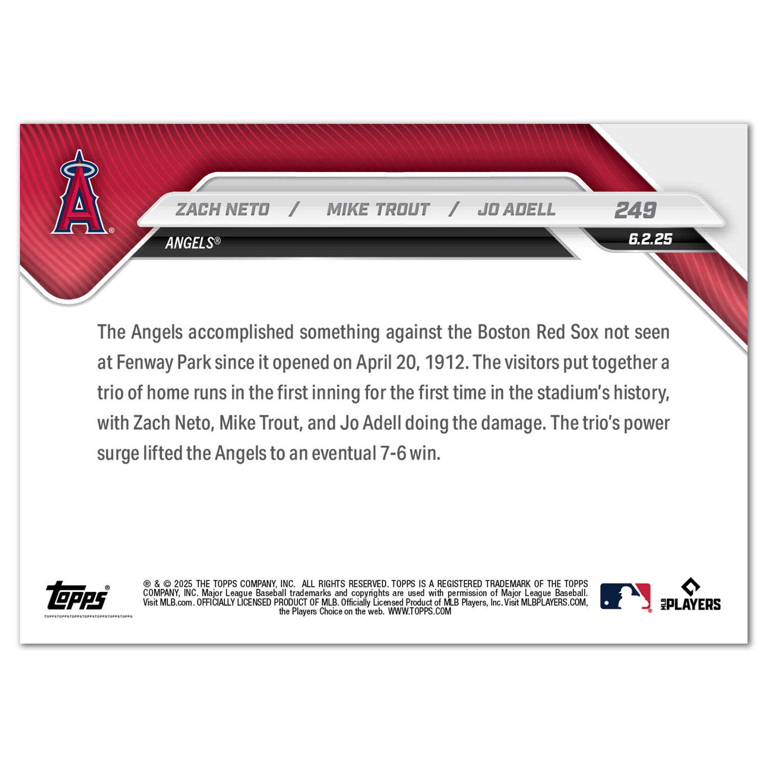 Zach Neto / Mike Trout / Jo Adell - 2025 MLB Topps NOW® - Card 249